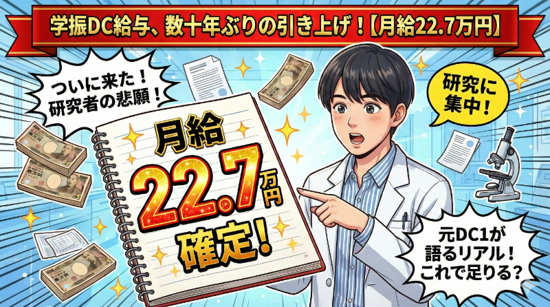 学振DCの給与が数十年ぶりに引き上げられた感想【22.7万円】