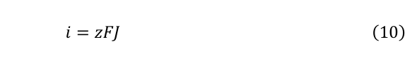 反応電流は流束Jを用いて以下のように表すことができる: