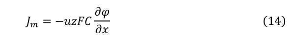ここで、uはイオン移動度、zは電荷数、Fはファラデー定数、Cはイオン濃度、φは電位である。Einstein-Smoluchowskiの関係は、移動度uと拡散係数Dを結びつける: