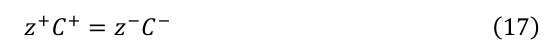 ここで、添字+と-はそれぞれカチオンとアニオンを表す。理想的な二成分電解質における電気的中性条件下では、以下の関係が成立する: