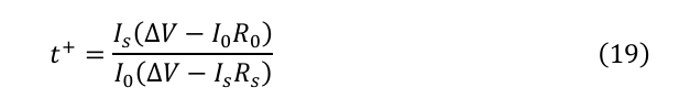 実際の電気化学測定において、輸率は直流(DC)分極法または交流(AC)インピーダンス法を用いて評価される。DC法ではBruce-Vincent式が用いられる: