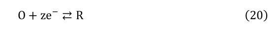 電極表面における電気化学反応について、酸化種Oと還元種Rの間の一般的な電子移動反応は以下のように表される: