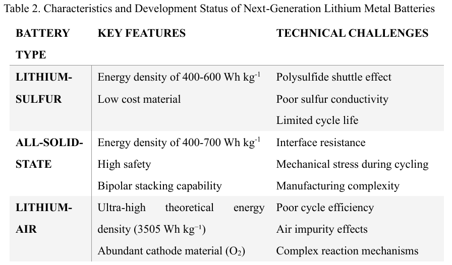 リチウム金属負極を採用する次世代蓄電池は、従来のリチウムイオン電池(200–250 Wh kg⁻¹)を大幅に上回る理論エネルギー密度を実現する可能性を秘めている。代表的な三つの候補には、リチウム硫黄電池、全固体電池、リチウム空気電池がある。