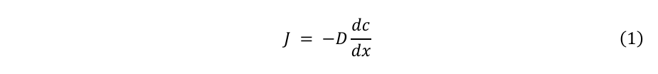 拡散は、濃度勾配によって駆動される自発的な物質輸送である。定常状態における拡散流束はFickの第一法則によって記述される:
