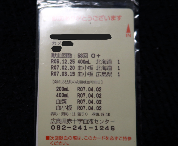 58回目の献血に行ってきた。今回からは広島にて献血。