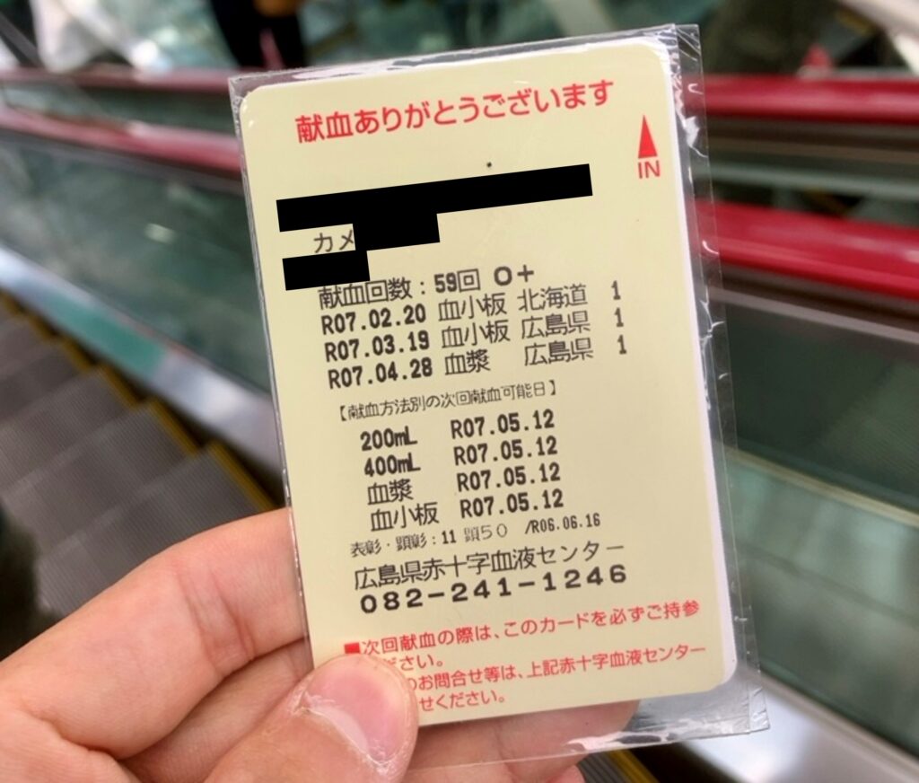 今月、60回目の献血を迎えた。父よりも早く血管が還暦に達した。血管よ、今までよく頑張った。毎月極太の針を突き刺されながらも、よくぞ都度修復して元通りになったな。これからもどうかよろしく頼む。あと40回。100回を目指そう。100回行ったら金色有功章が貰える。そこまでやったらもういいだろう。引退するかもしれないし、しないかもしれない。きっと、辞めないんだろうな。次は200回!とか言って通い続けるだろう。