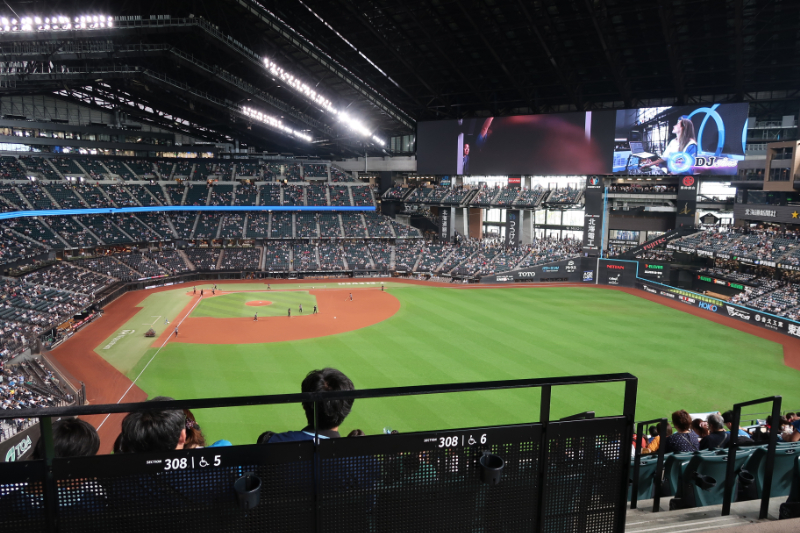 エスコンフィールドは2023年製。まだ運用三年目のスタジアム。綺麗で、傾斜が緩く、どの席でも快適に観戦できる。スタジアム内では音がよく響く。ディスプレイが、デカいのなんの。ここはいったいどこなのだろうか。ボールパーク? いや、映画館ではないか。