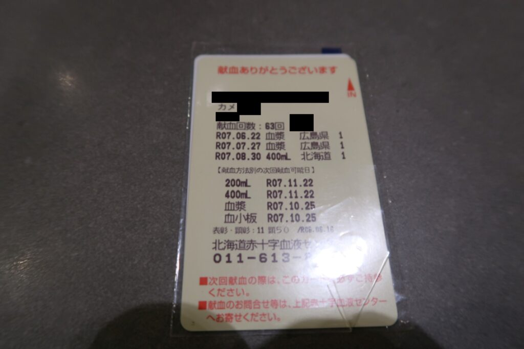 提供した血液は、患者が手術を受ける時の輸血処置に使われるそう。『この世界の役に立った』という気持ちを成分献血よりも強く味わえた。