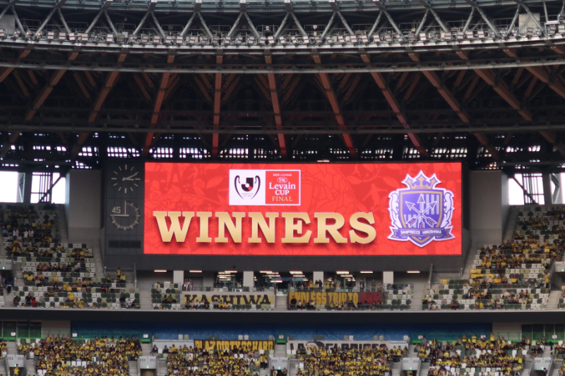 後半は一進一退の攻防が続く。広島が中央突破したかと思えば、柏が巧みな連係プレーで守備を崩してくる。後半35分、相手のストライカーに一点を返された。まだ勝負は分からない。シャンパンファイトをするには早い。全員で最後の後押しをする。もう一点も取らせない。このまま勝ち切るぞ。