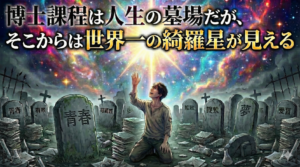 博士課程は文字通り【人生の墓場】になりえます。華やかな二十代を埋葬し、可能性の多くを埋葬し、時には夢そのものを埋葬する場所になりえます。墓標の下で眠るものの数を数えれば、とても正気ではいられないかもしれません。