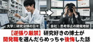 この記事では、研究好きな博士学生の私が就活で開発職を選び、一年働いた感想をお話しします。