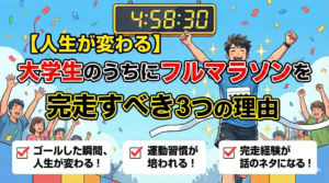 今回は、大学卒業までにフルマラソンを完走すべき3つの理由を、ランナーの私が実体験を交えてお伝えします。