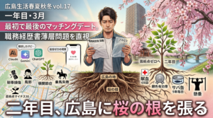 一年前、8年ぶりの広島暮らしを始めた。勤め先の借り上げ社宅制度を活用し、広島湾を一望できる超高層タワマンの最上階に月1.5万円で住ませてもらっている。3月になり、徐々に暖かくなって、河川敷の木に梅が咲き始めた。梅の次は桃、桃のあとは桜。桜が散れば、すぐ新