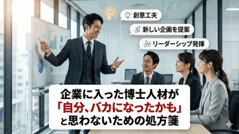 考えてみてください。博士課程では、研究テーマの設定から実験手法の選定、データの解釈まで、すべてを自分の裁量でやってきましたよね。会社では、そこで使っていた力を、作業プロセスに全振りするわけです。