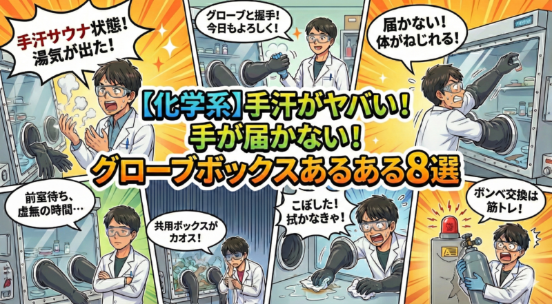もしどこかの研究室で、巨大な箱に両腕を突っ込んで黙々と作業している人を見かけたら、三重手袋の向こう側で静かな戦いが繰り広げられていることを、少しだけ思い出してあげてください。そしてもし手が湯気を出していたら、そっとしておいてあげてください。