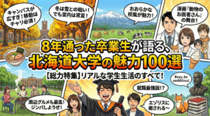 出身大学の話には偏差値の影がチラつき、どうしても自慢っぽくなりがちです。北大の場合は「寒かったでしょう」「ジンギスカン食べてた?」みたいな方向に流れてくれるので、変に気まずくなりません。大学名がそのまま会話の潤滑油になるって、なかなかおトクな属性だと思いませんか?