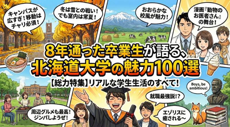 先人のサイトに敬意を払いつつ、八年間どっぷり浸かった人間にしか書けない視点で、オリジナルな記事に仕上げました。受験生の方はもちろん、北大に少しでも興味のある方に楽しんでいただけたらうれしいです。