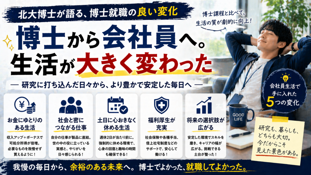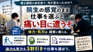 仕事や時間の自由度は博士課程のほうが圧倒的に高い