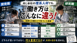 博士時代なら、なんでだろうと思った瞬間に、文献をあたって、実験して、その日のうちに答えを出せました。疑問をその場で潰せる環境にいたわけです。会社員にはそんな権限も時間もありません。上司に相談して、稟議を通して、予算をつけて、手順書を書いて……とやっているうちに、疲れて全部どうでもよくなります。気づけば、自分がもともと何に興味を持っていた人間なのか思い出せなくなりました。